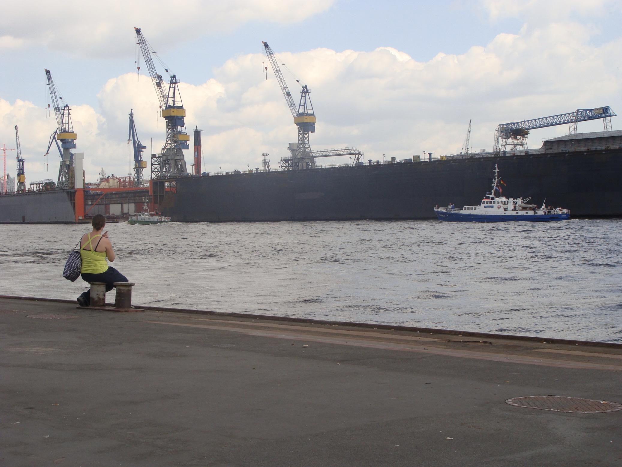 es una estatua que vi desde el ferry que recorria el puerto. la trate de ubicar con google maps pero fue imposible. La encontre recien por el escultor. Se llama Stephan Balkenholn y la obra es Hombre boya u Hombre en el ponton. Capaz era temporaria, porque dice la nota que habia 4 en toda la ciudad. Pero de buscar veo que ha habido otras cosas en distintas partes que seguro no vi. Tiene estas intervenciones modernas que rotan probablemente. Es un poco la sorpresa que tuve de Hamburgo