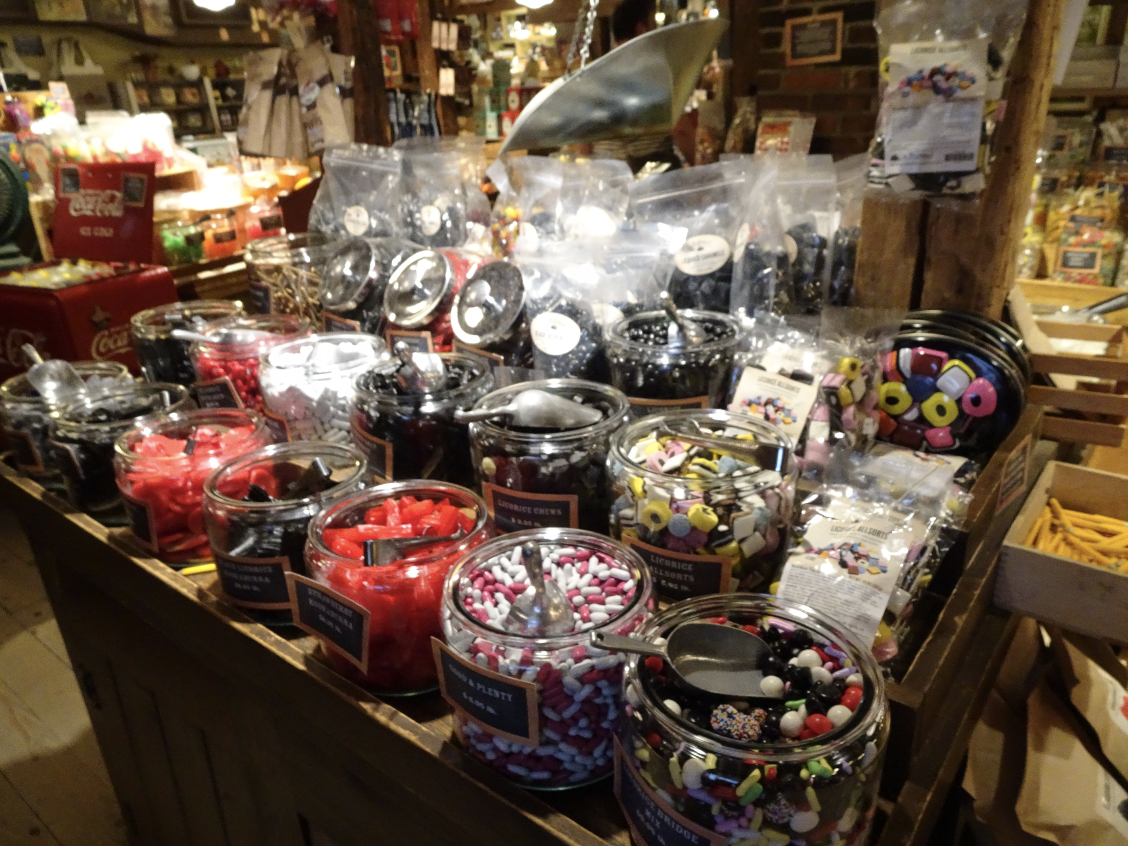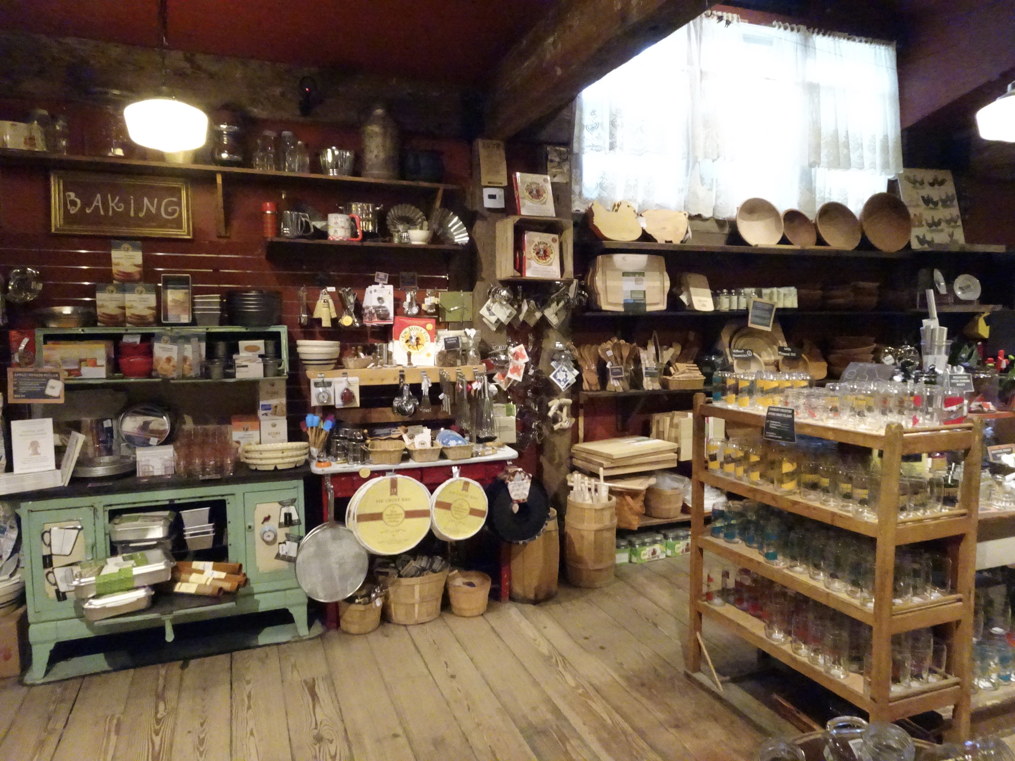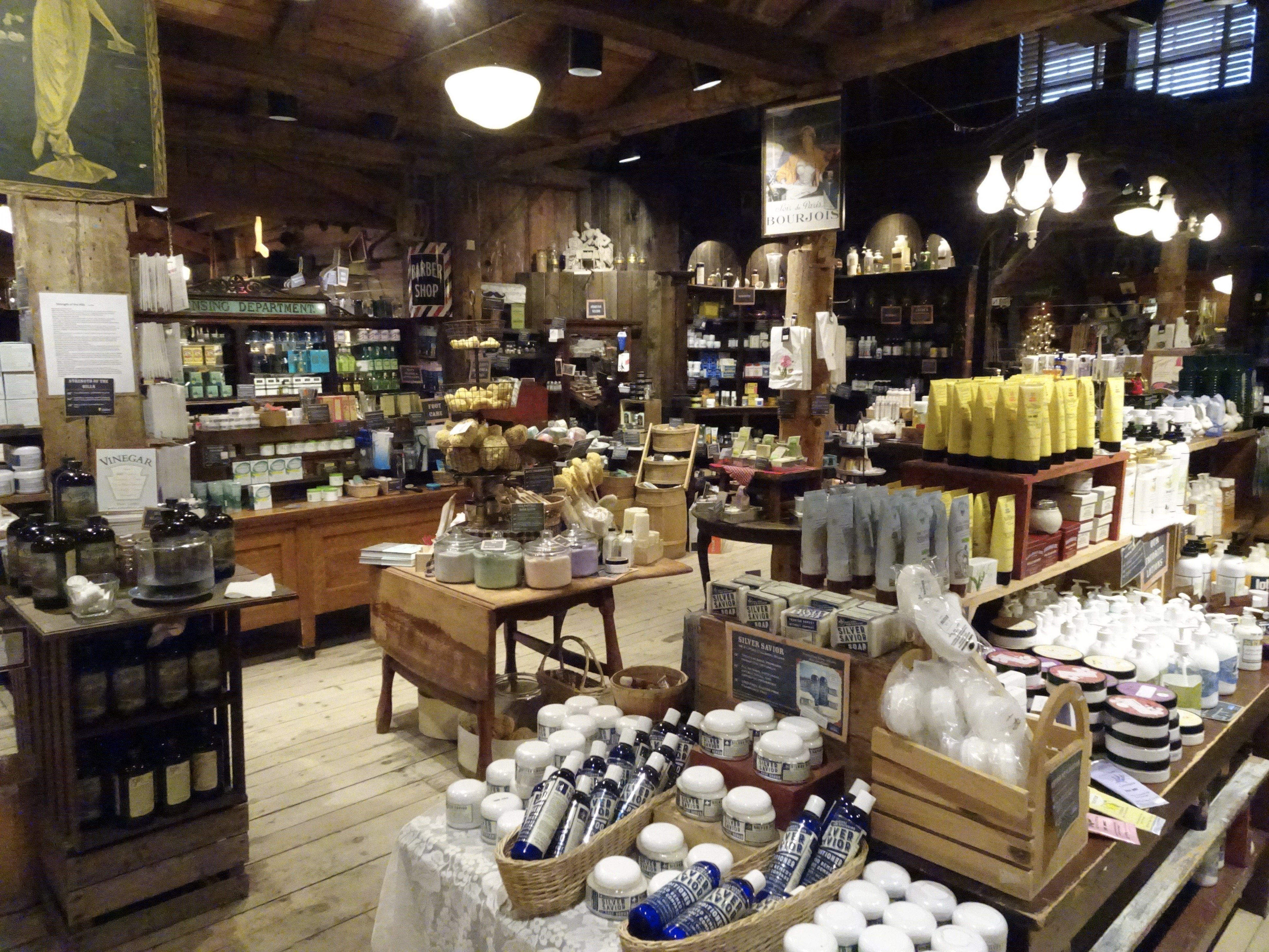 Sobre la ruta, hay dos locales típicos (country stores) que venden productos locales (principalmente lacteos) y ceramicos. Pero el llamado Vermont Country Store, es una amplia colección de todo lo que se conseguia en viejos tiempos, hasta jarabes para todo tipo de enfermedades (no me anime a probarlo). Muy divertido deambular por ahí, ya que tratan de mantener el espiritu de aquellos tiempos, hasta en los productos. Mucho orgánico y natural en las comidas y tejidos de esos para pasar el invierno de la región en lo que hace a ropa.